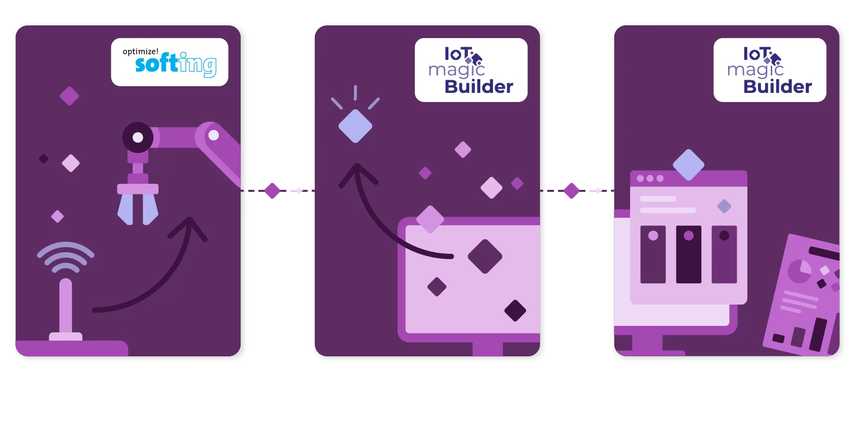 Grâce à l’intégration des solutions de connectivité de Softing Industrial Automation avec la plateforme IoT magic Builder, les industriels peuvent facilement connecter leurs équipements industriels, centraliser les données et les transformer en services connectés à forte valeur.